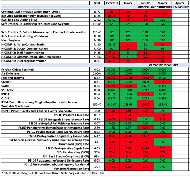 Data are scarce on the impact of implementing Leapfrog Hospital Safety Grade on overall clinical outcomes. However, using dashboards to track specific parameters allows for objective assessment and better resource utilization and monitoring progress, ultimately improving patient care and hospital performance.