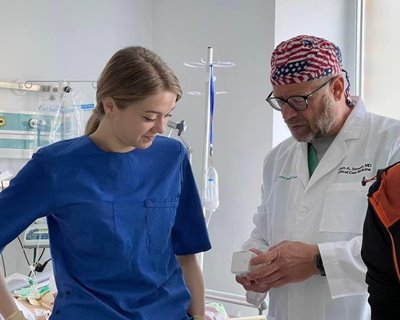 “Ukrainian soldiers are giving their lives for our shared democratic values,” Dr. Stevens said. “We couldn’t go on vacation when people were dying, particularly when we had skills that could help save lives.” Dr. Stevens spent 36 years in the military and served, along with Dr. Kerr, in Afghanistan, Iraq, and Africa. During that time, Dr. Stevens was deployed to Ukraine. As deputy surgeon for the U.S. Naval Forces Europe-Africa/U.S. 6th Fleet, he participated in the exercise Sea Breeze, a multinational exercise with the Ukrainian Navy that allowed him to visit one of the country’s medical clinical centers and talk with hospital staff.
