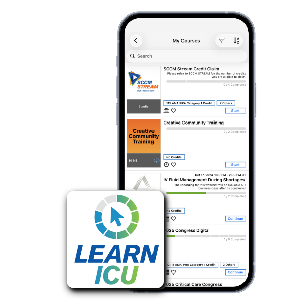 SCCM’s LearnICU app offers you online learning on the go! All online learning, assessment, and examination preparation opportunities from the LearnICU website are available on your mobile device, so you can access material when it is most convenient for you!
