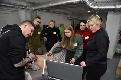 First Deputy Minister of Health of Ukraine Sergii Dubrov, MD, supported the courses and took part in them. “The course is very cool,” he said during the training. “Two hours of lectures and then most of the training in practical classes on living people. This is an opportunity to learn in real mode with real people. They are all different; they have their own anatomical features.”