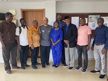 John Sampson, MD (4th from left), meeting with leaders in Liberia, including Minister of Health of Liberia Honorable Dr. Wilhelmina Jallah (5th from left). |